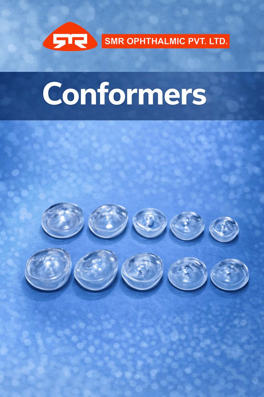 Conformers are used post-enucleation to maintain the shape of the conjunctival sac and fornices. They fit closely to the socket contour and feature drainage holes to allow discharge and medication access. They are made using premium biocompatible PMMA material.