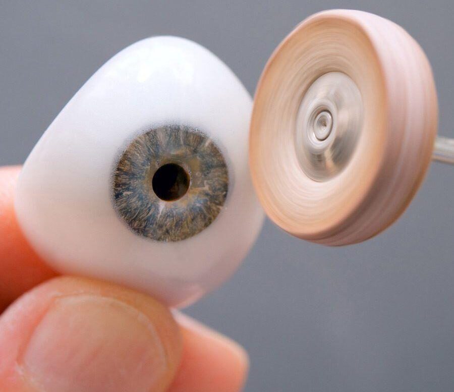 According to our technique for making Customized eyes, the Iris is hand-painted with special imported oil paints suspended in liquid acrylic.